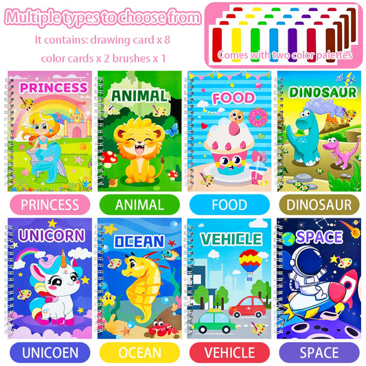 12 Sheets/Set Portable Watercolor Painting Book - Kids Coloring Book with Paint Brush, Graffiti Picture Drawing Stationery