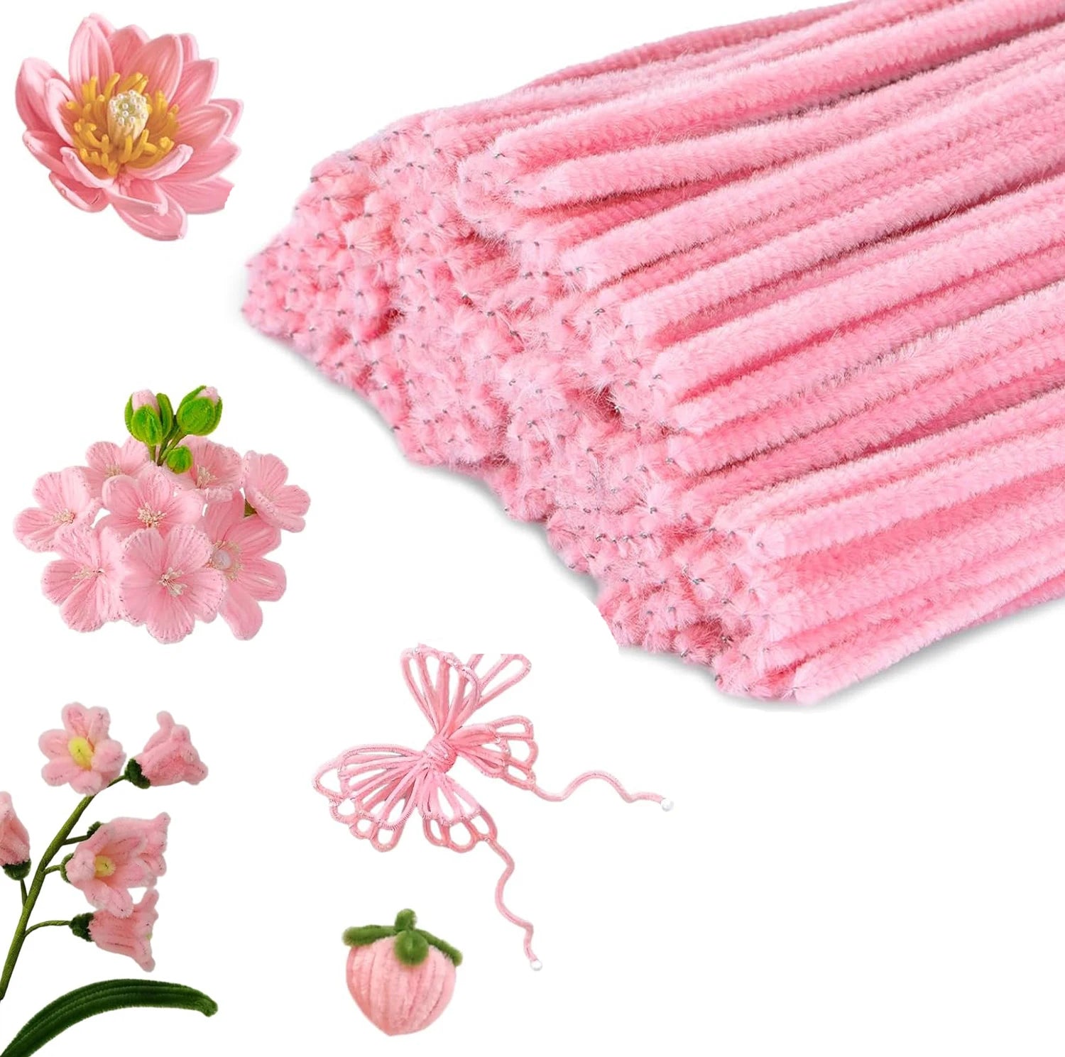100pcs Pink Pipe Cleaners, Chenille Stems, Pipe Cleaners for Crafts, Pipe Cleaner Crafts, Art and Craft Supplies.