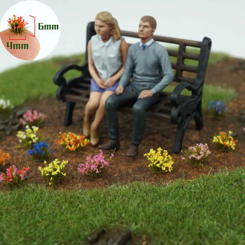 104Pcs Miniature Static Flower/Grass Tuft Plant Model Kit for Diorama Railway/Building/Garden Micro Landscape Model Making