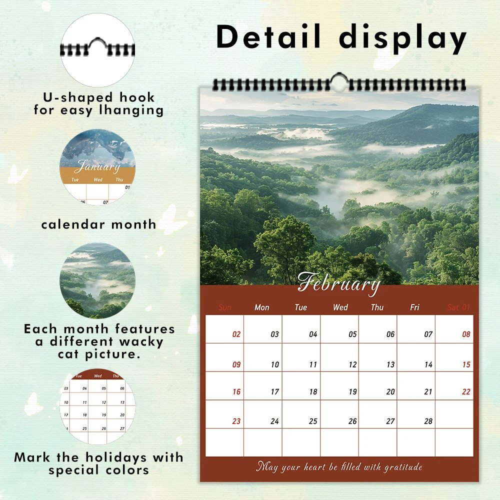 1pc Nature Landscape Wall Calendar -Scenic Theme, 12 Different Designs, Suitable as a Gift for Birthdays, Christmas and New Year