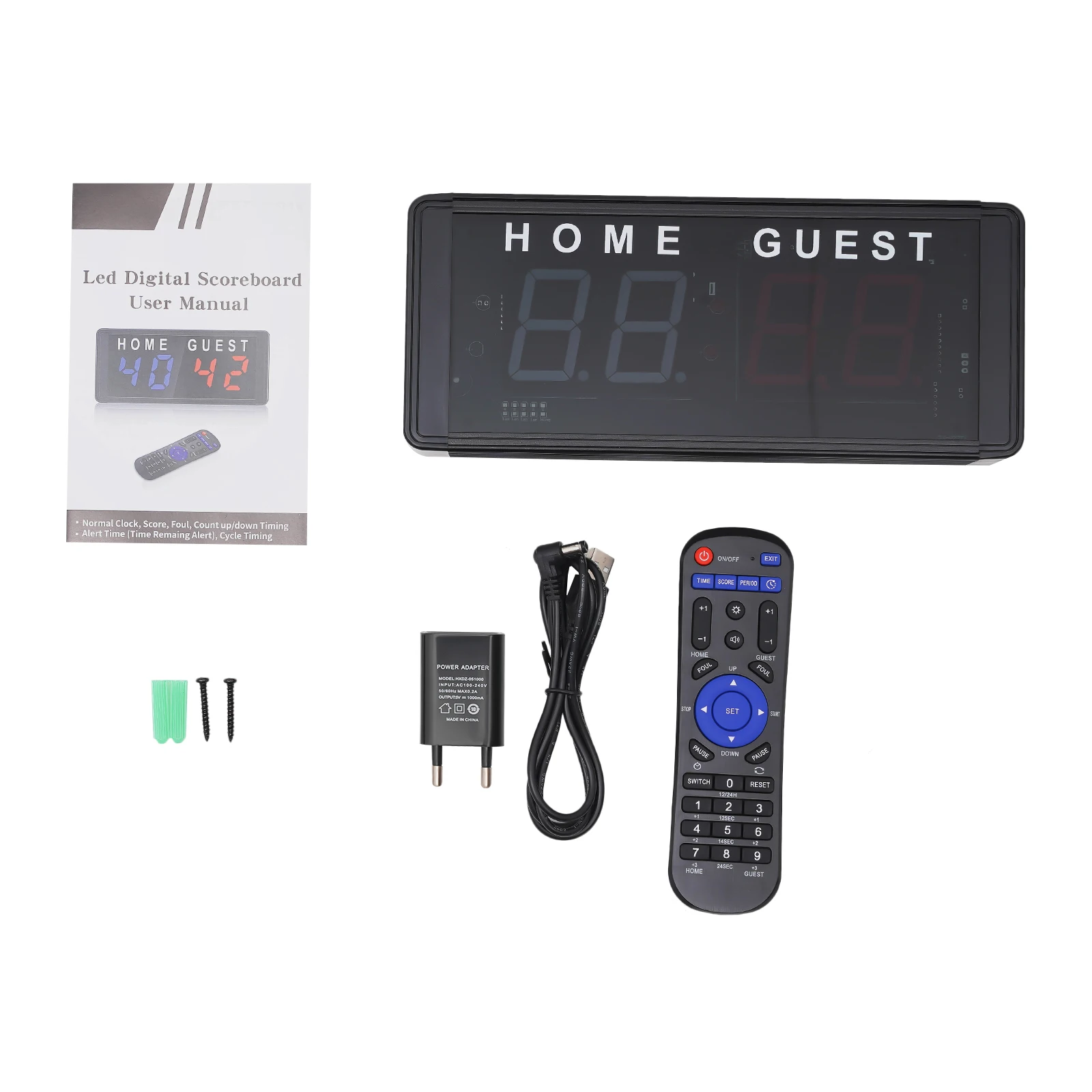 Thoughtful Design: It displays scores from 0-99, features an energy-saving LED light source, and a 5-level brightness adjustment so that scores are visible to both athletes and spectators. In addition to recording scores, it also has clock and countdown functions.