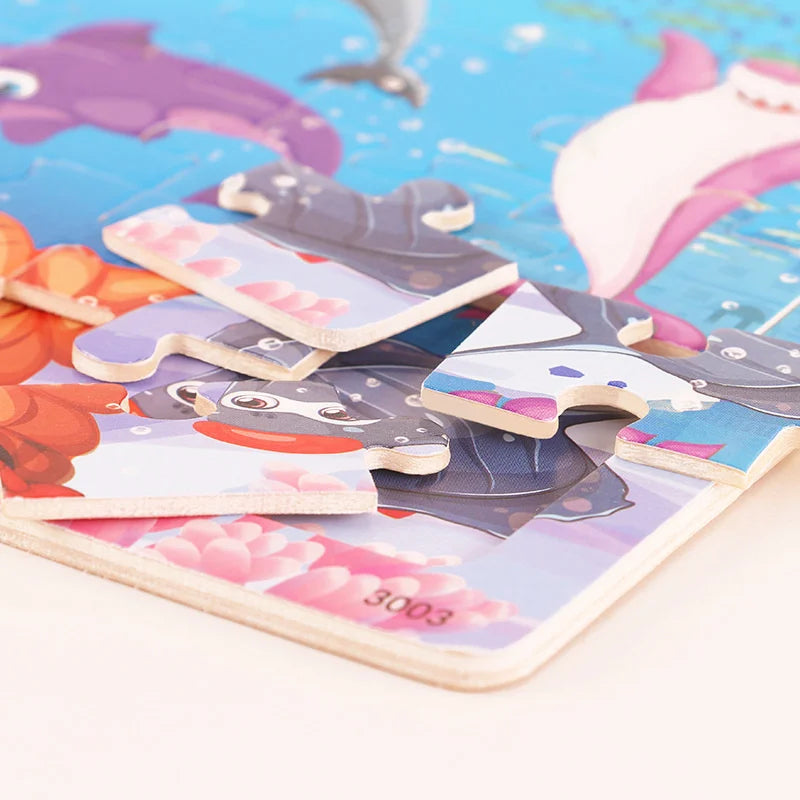 Economy 30piece Montessori 3D Puzzle Cartoon Animal Wooden Jigsaw Puzzle Board Game Educational Toys For Children Gifts