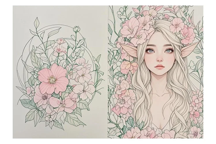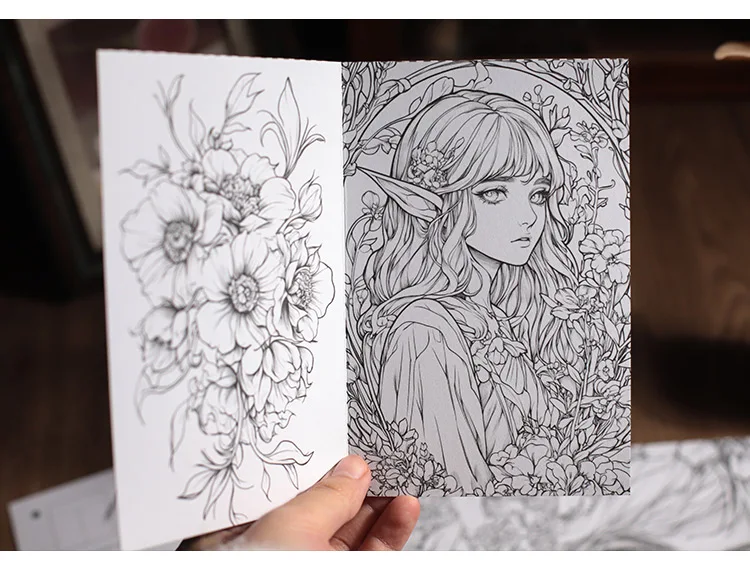 Garden Fairy Coloring Book for Children Adults Stress Relief Art Painting Sketchbook Watercolor DIY Drawing Notebook Supplies