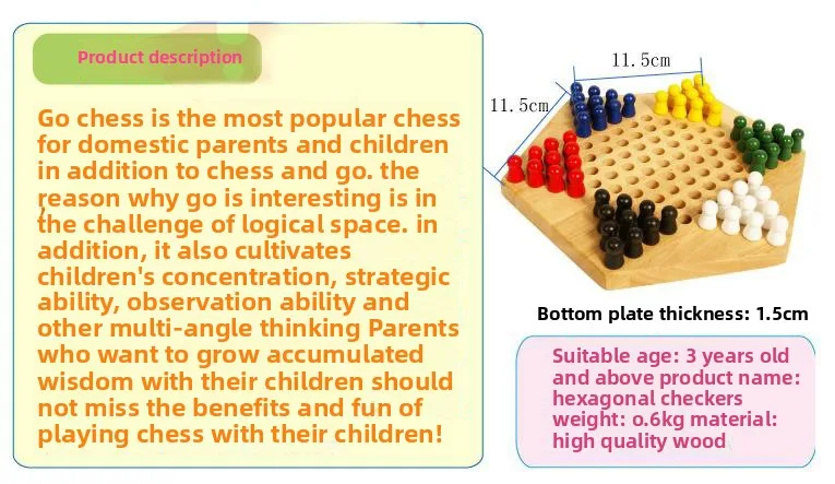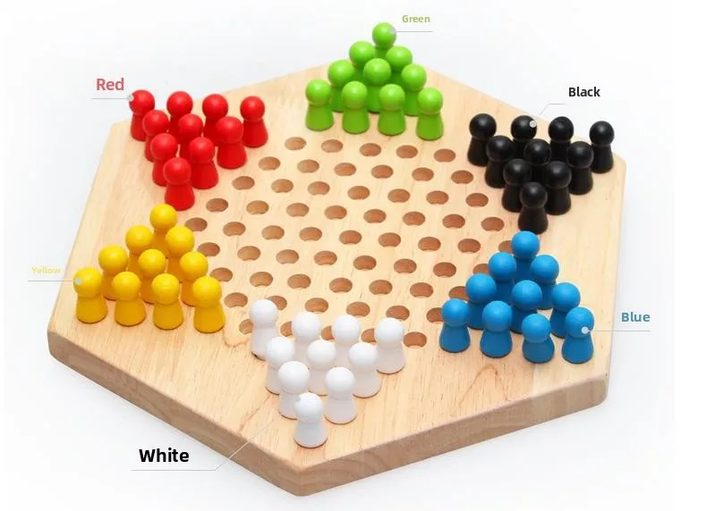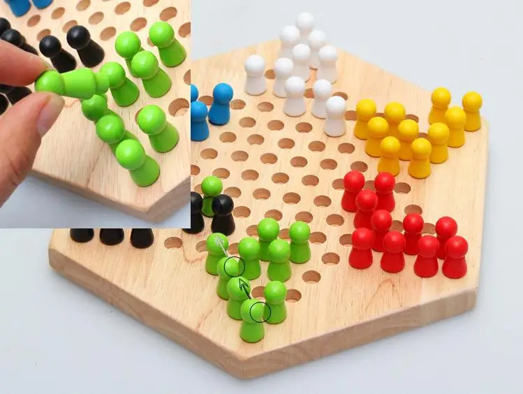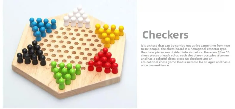 Hexagonal Checkers, Parent-child Puzzle Game Wooden Jumping Beads Children's Educational Toys Board Game CPC