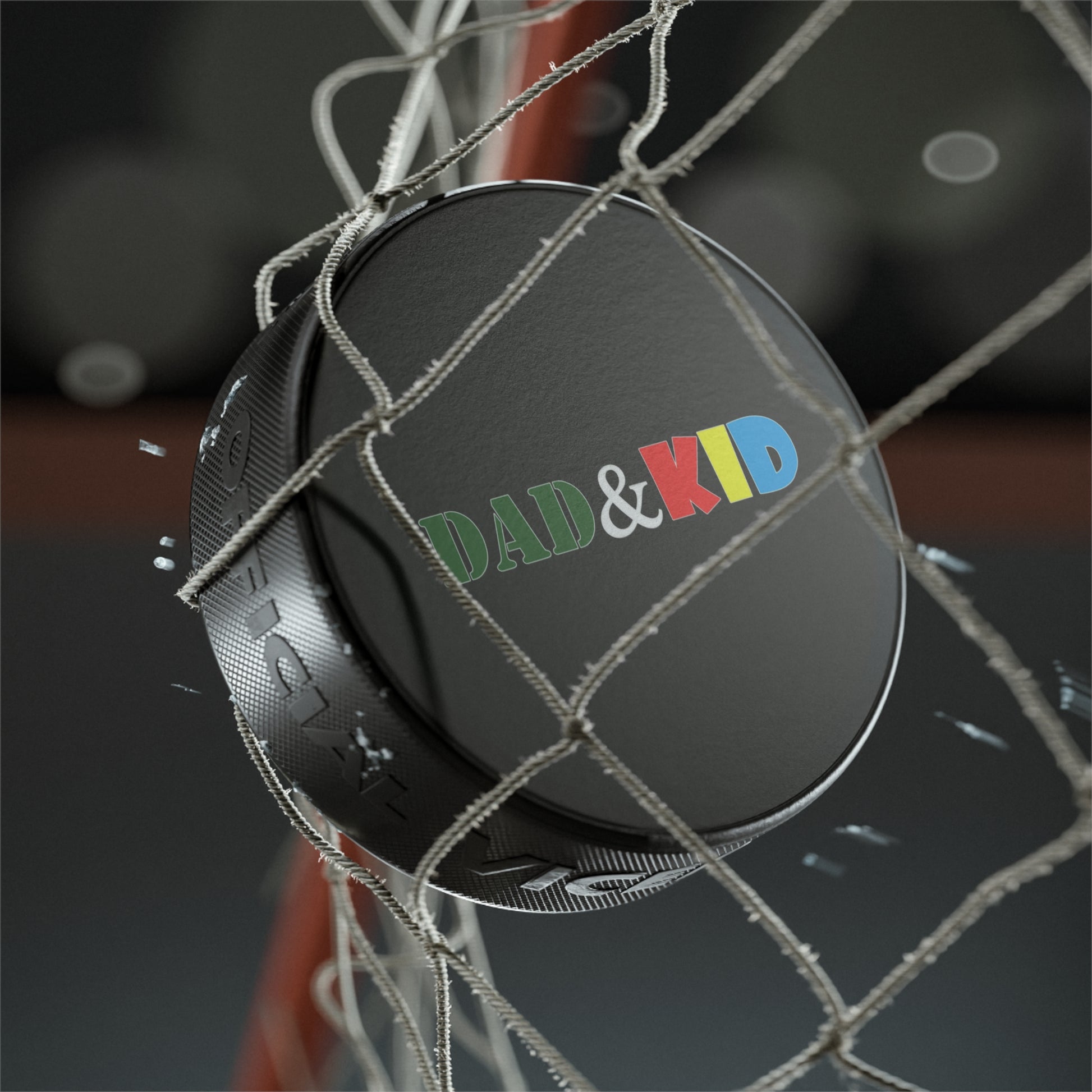 Hockey Puck — "DAD & KID" Color-Block Logo