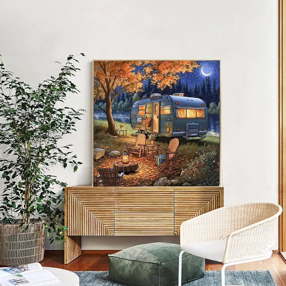 Huacan Diamond Painting Camping Car DIY Diamond Mosaic Moon Landscape New Arrival Kit Flower Embroidery Decor Craft Kit