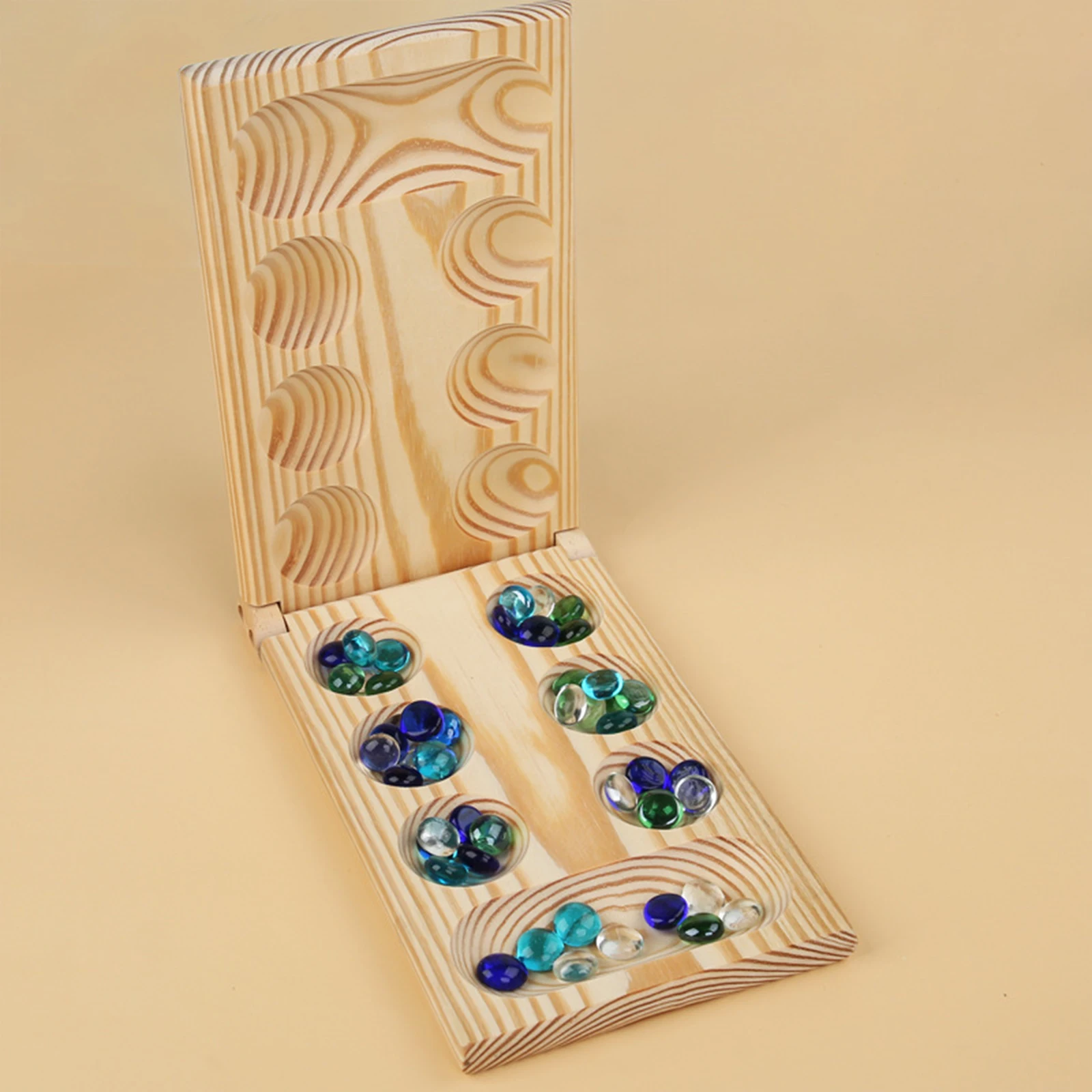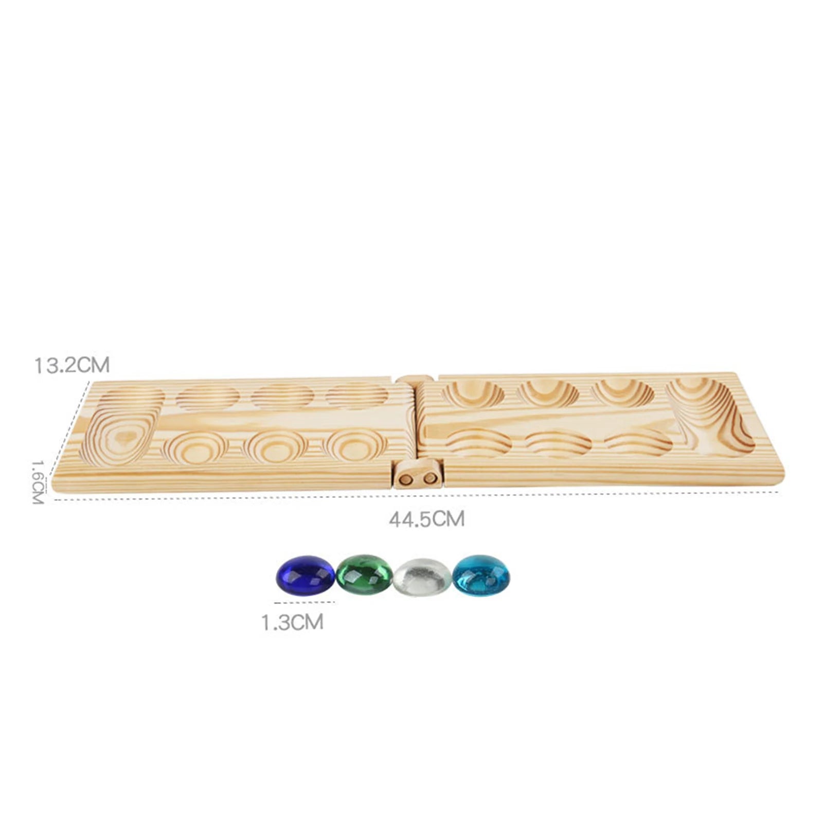 【Complete Set】Mancala Board Game set includes a wooden board and glass beads.