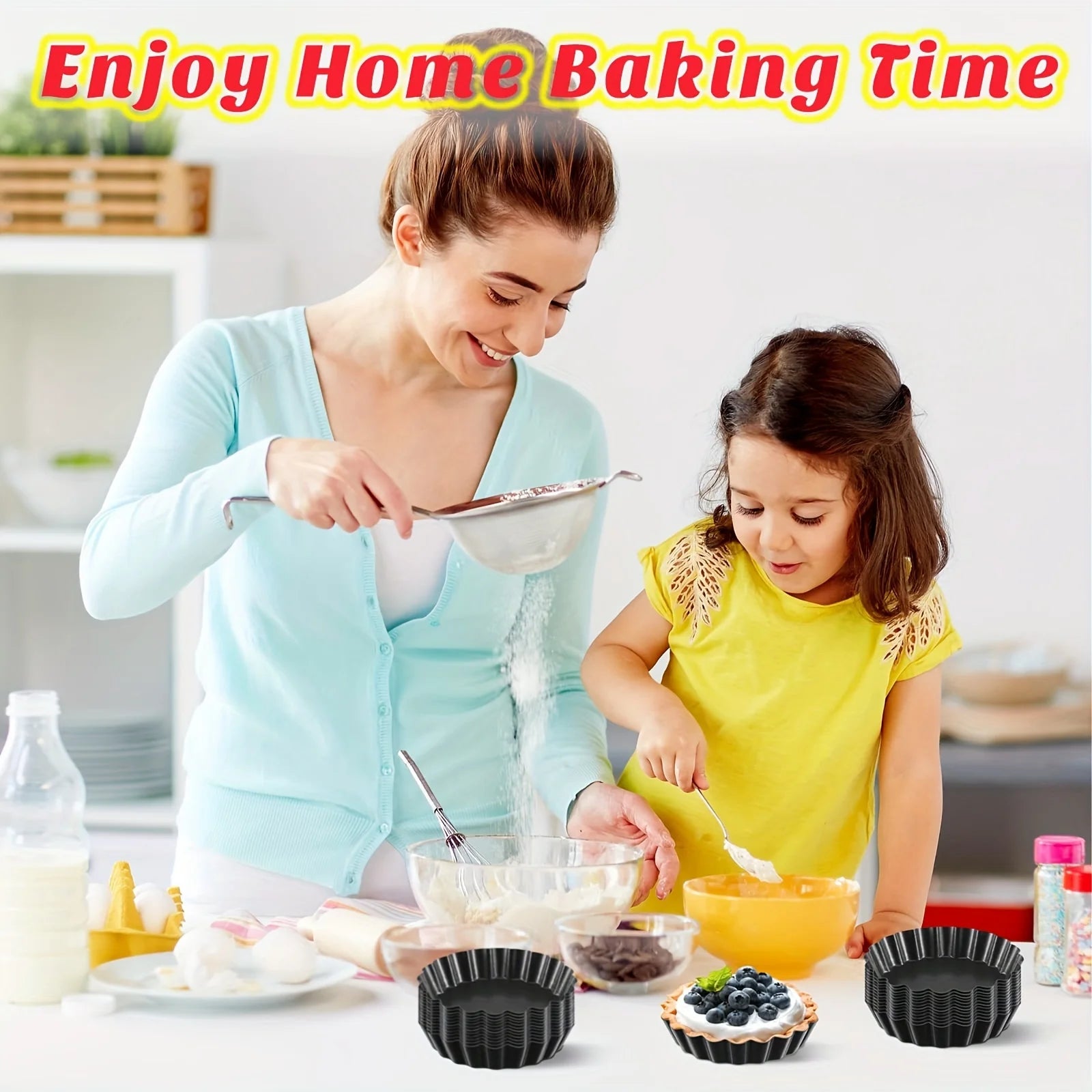 Mini Tart Pans Small Cake Mold,With Removable Bottom,Nonstick Cake Pan,Round Quiche Pie Pan Set, Cupcake Muffin Mold Baking Tool