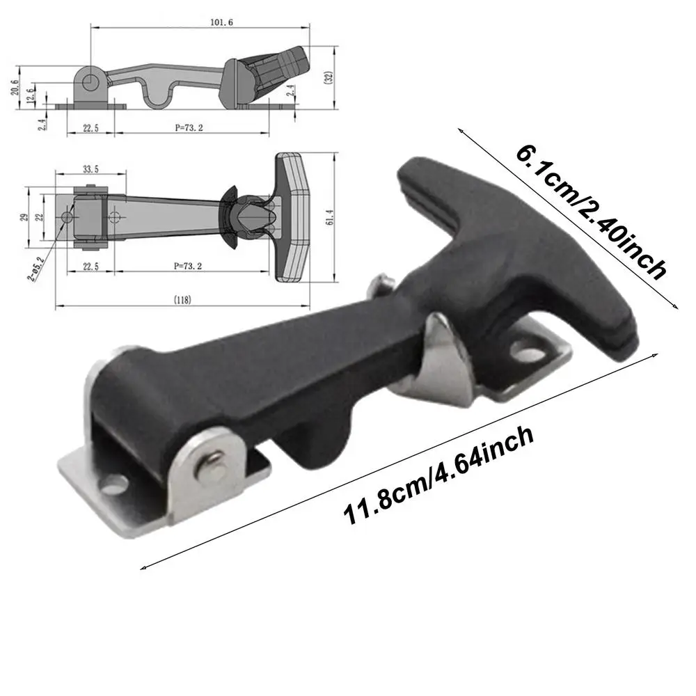 5.Curved T-Handle: Enjoy the secure and good experience with our stainless steel hood catch's comfortable grip, the curved T-handle makes locking usage smooth and easy, which ensures easy to hold usage.