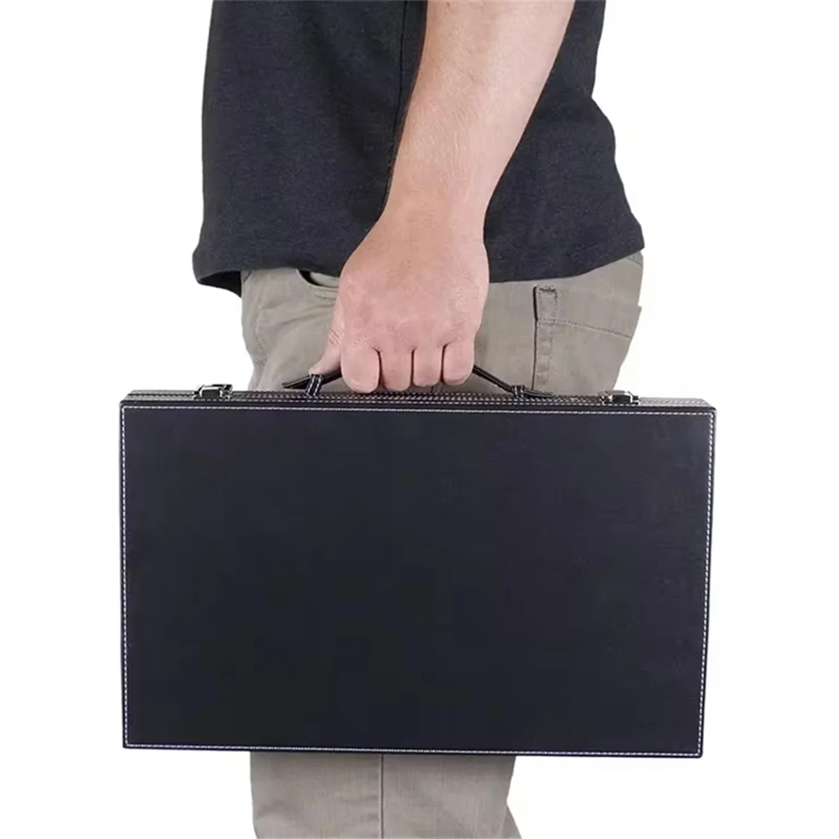 This chessboard set is made of PU leather, exquisite sewing leveling and excellence craftwork. Suitable for chess and entertainment, venue amusement equipment. This is a good recreational game, suitable for relaxation. Nice gifts for advertising, business, awards, conference, etc. This classic backgammon game is the perfect set for beginners and advanced players alike and includes everything you need to play. The backgammon board game comes with a premium felt playing field with leatherette pips and organizational sections for checkers and accessories. The game set storage box can fold in half with all accessories inside, for a truly easy to store and carry set; Kept secure by metal clasps. Item type: Backgammon Set Checkerboard Box Size: approx. 38x23x5cm Colour:As Shown Material:PU Package Contents: 1 x Strategy Backgammon Game Set Only the above package content, other products are not included. Note: Light reflection and different displays may cause the color of the item in the picture a little different from the real thing. The measurement allowed error is +/- 1-3cm.