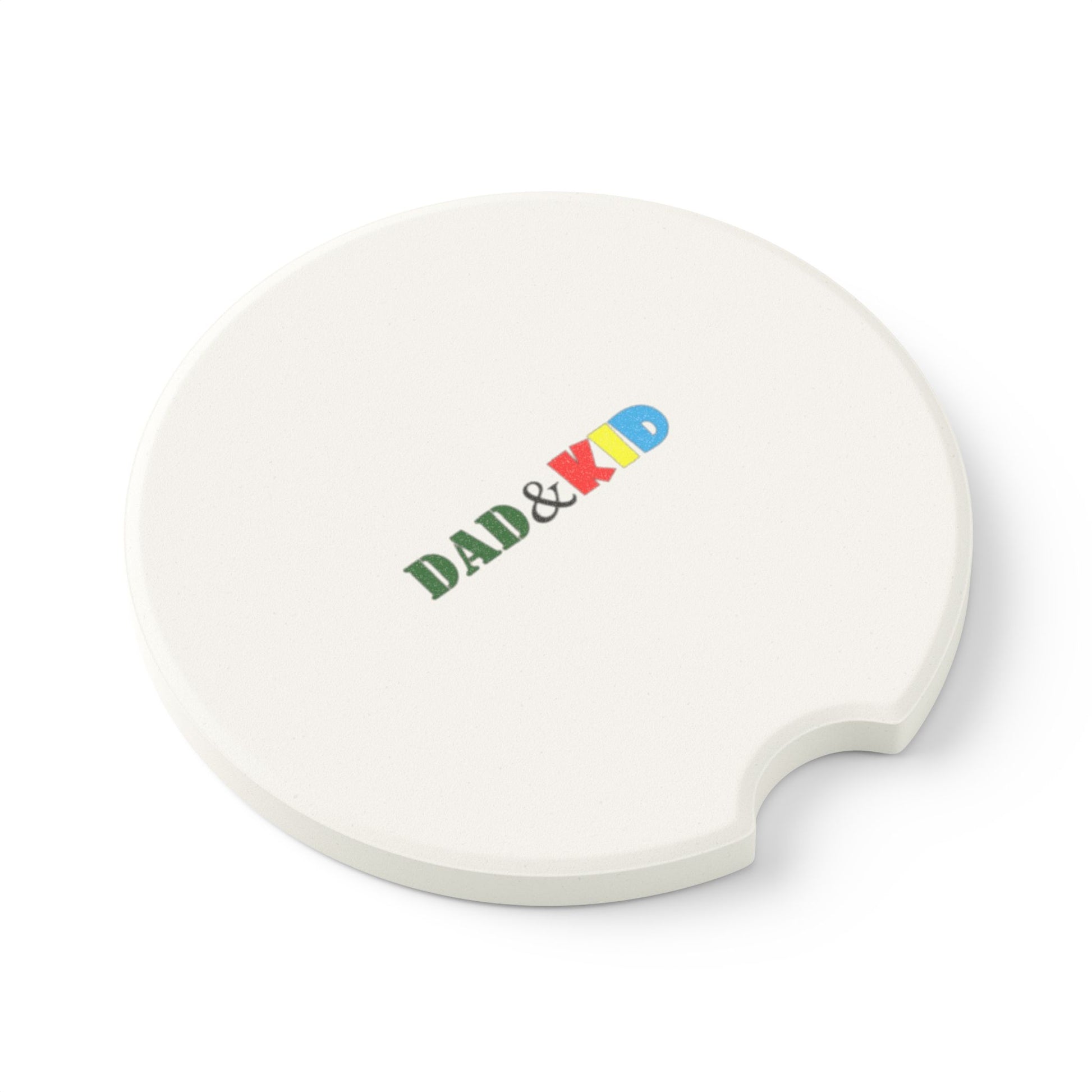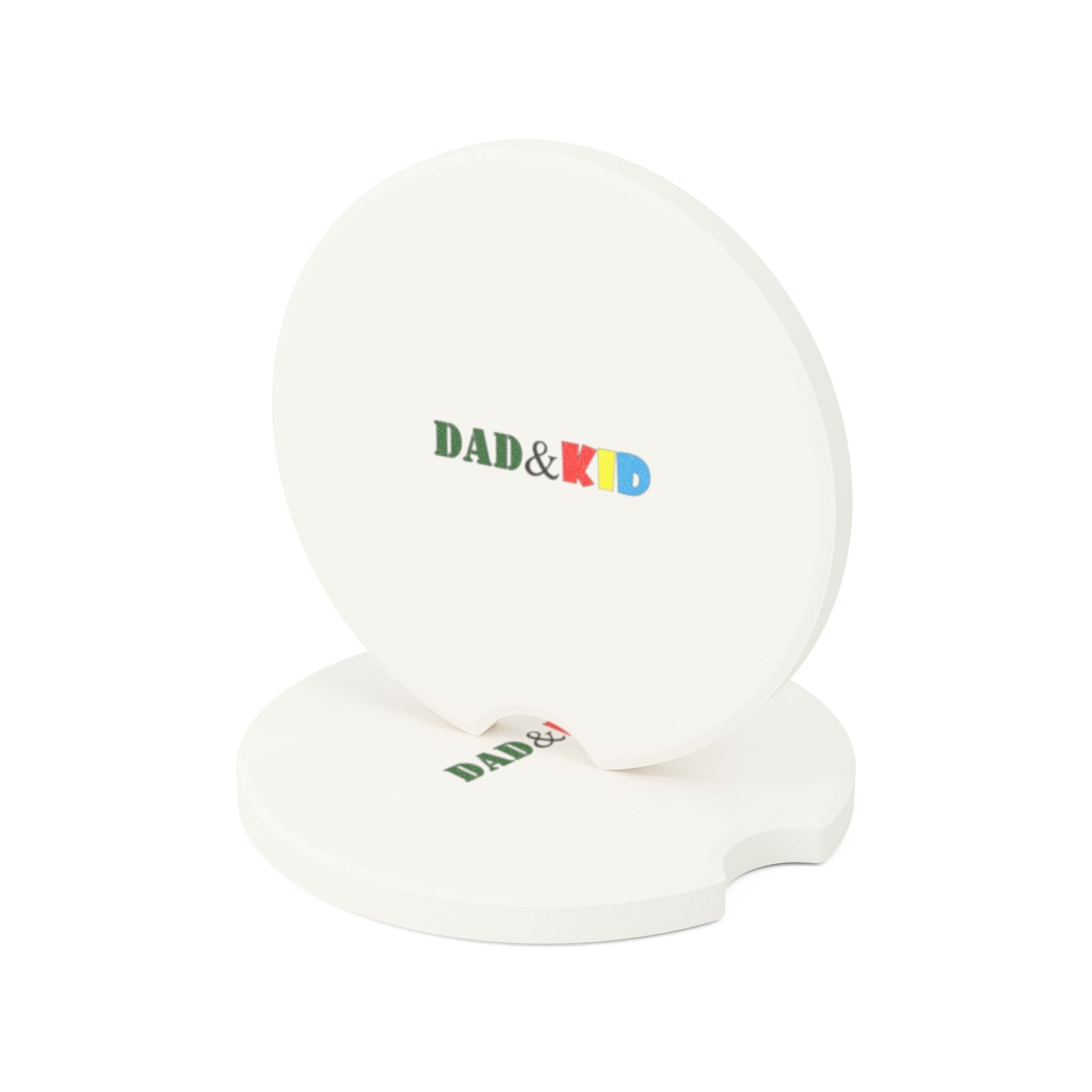 A set of small, tactile soapstone car coasters that bring a quiet, personal touch to everyday drives. These 2.6" round coasters slide into most cup holders and quietly absorb condensation so your vehicle stays dry and tidy. The matte, one-sided print places a cheerful "DAD & KID" motif at the center — a simple, colorful reminder of small, meaningful moments. Lightweight and cool to the touch, the soapstone surface develops a soft, lived-in patina over time, making each piece feel more familiar with every trip. Choose a single coaster for a subtle accent, or a set of 2 or 4 to outfit every passenger cup holder.