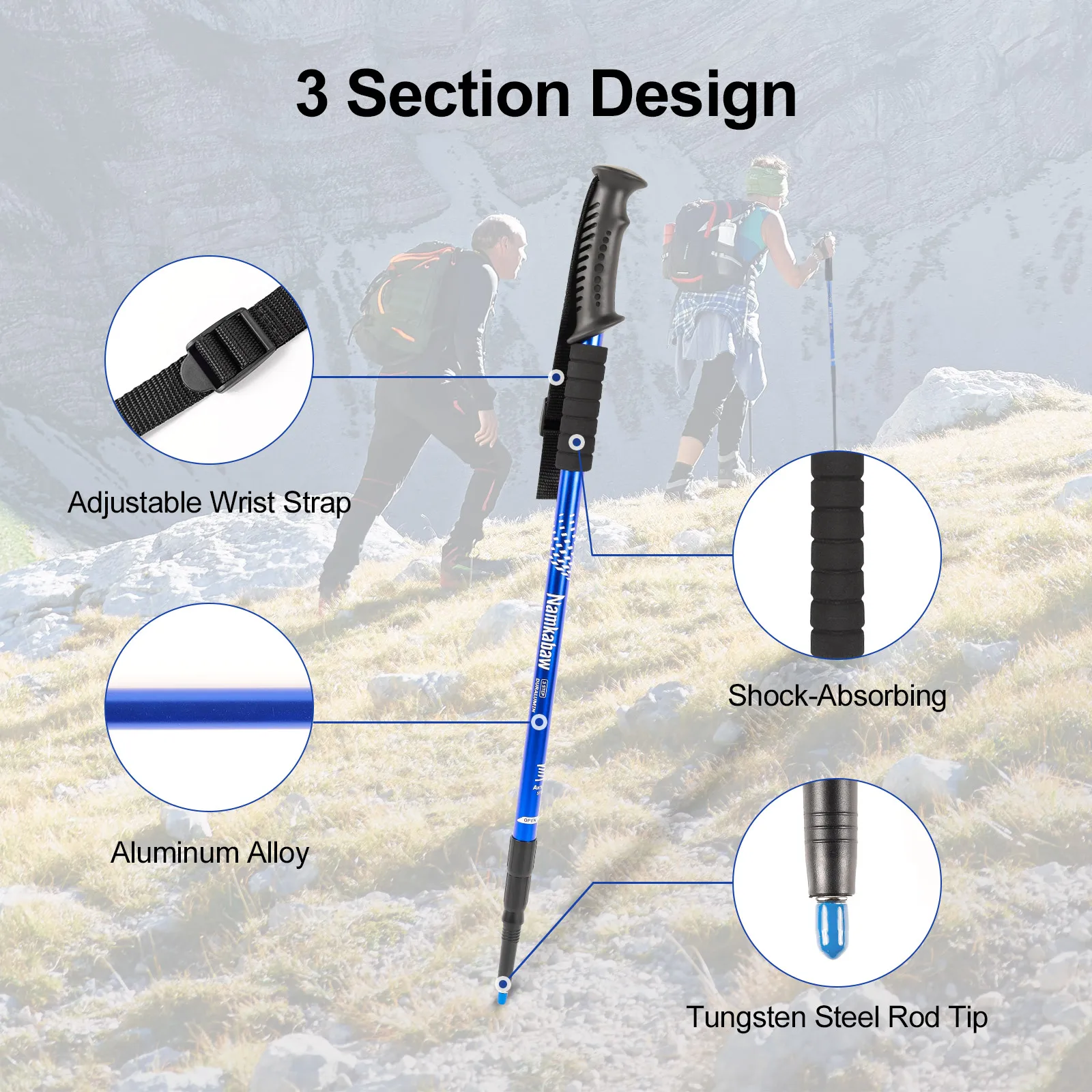 Ultralight Adjustable Trekking Poles 3-Section Aluminum Alloy Nordic Walking Sticks Telescopic Non-Slip for Men And Women Hiking