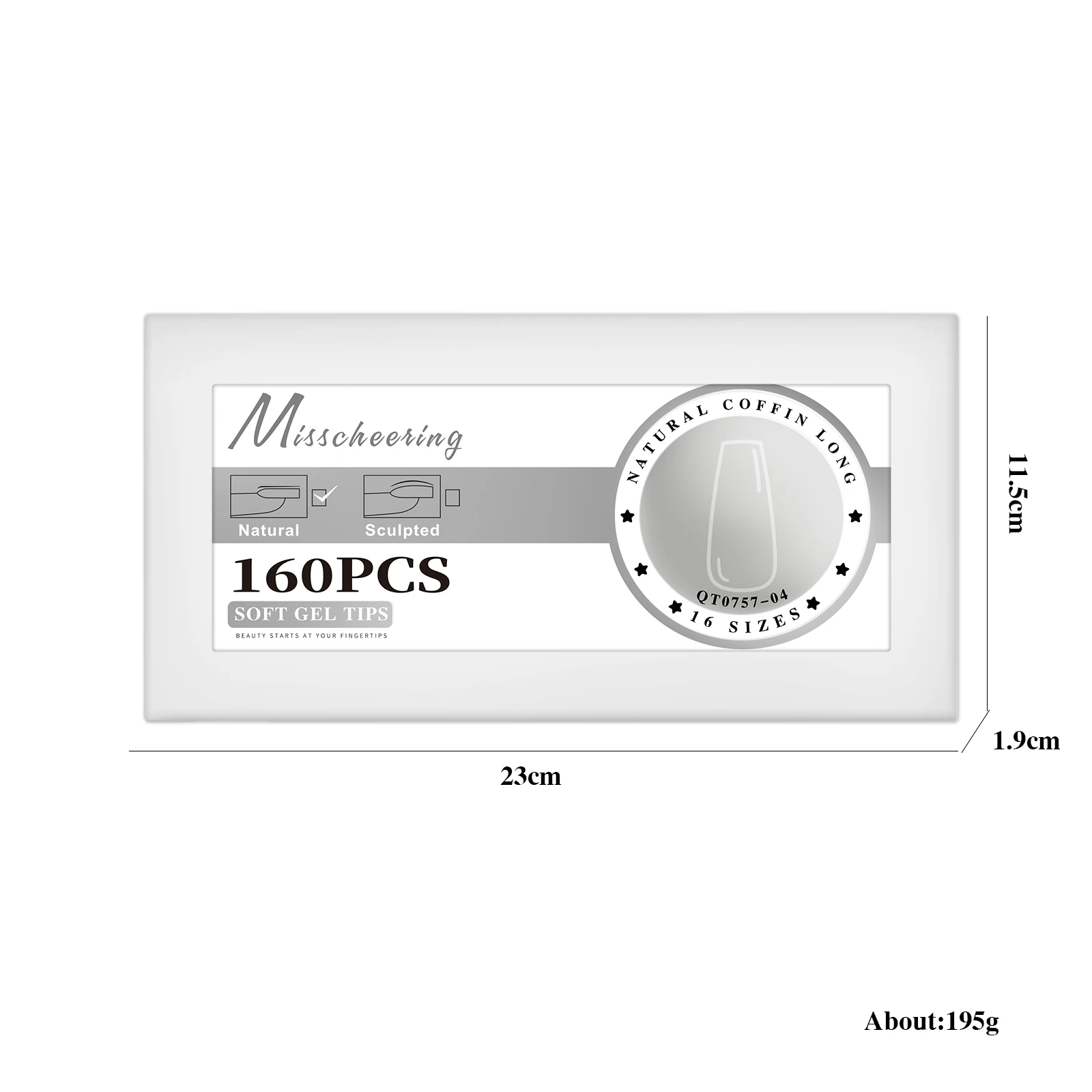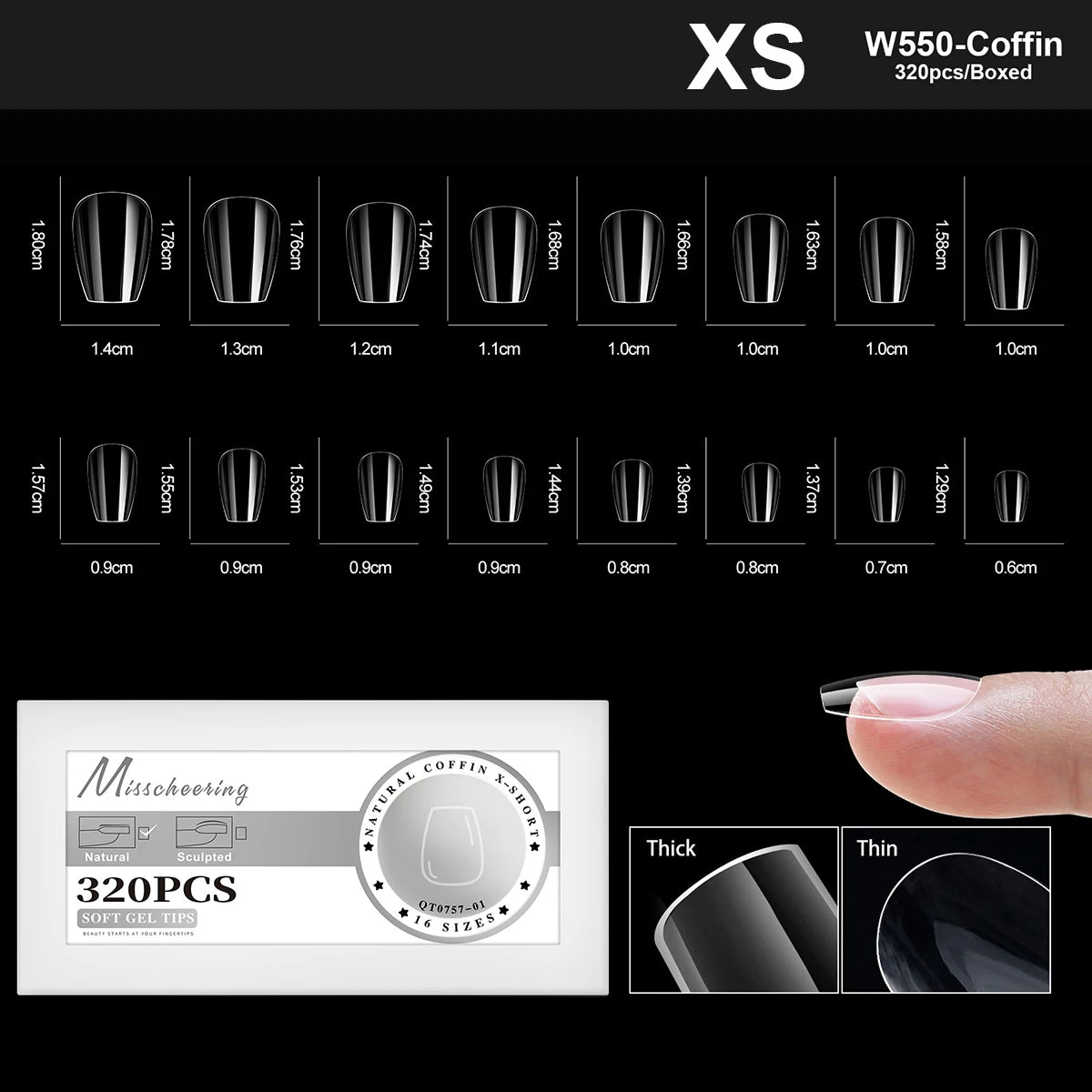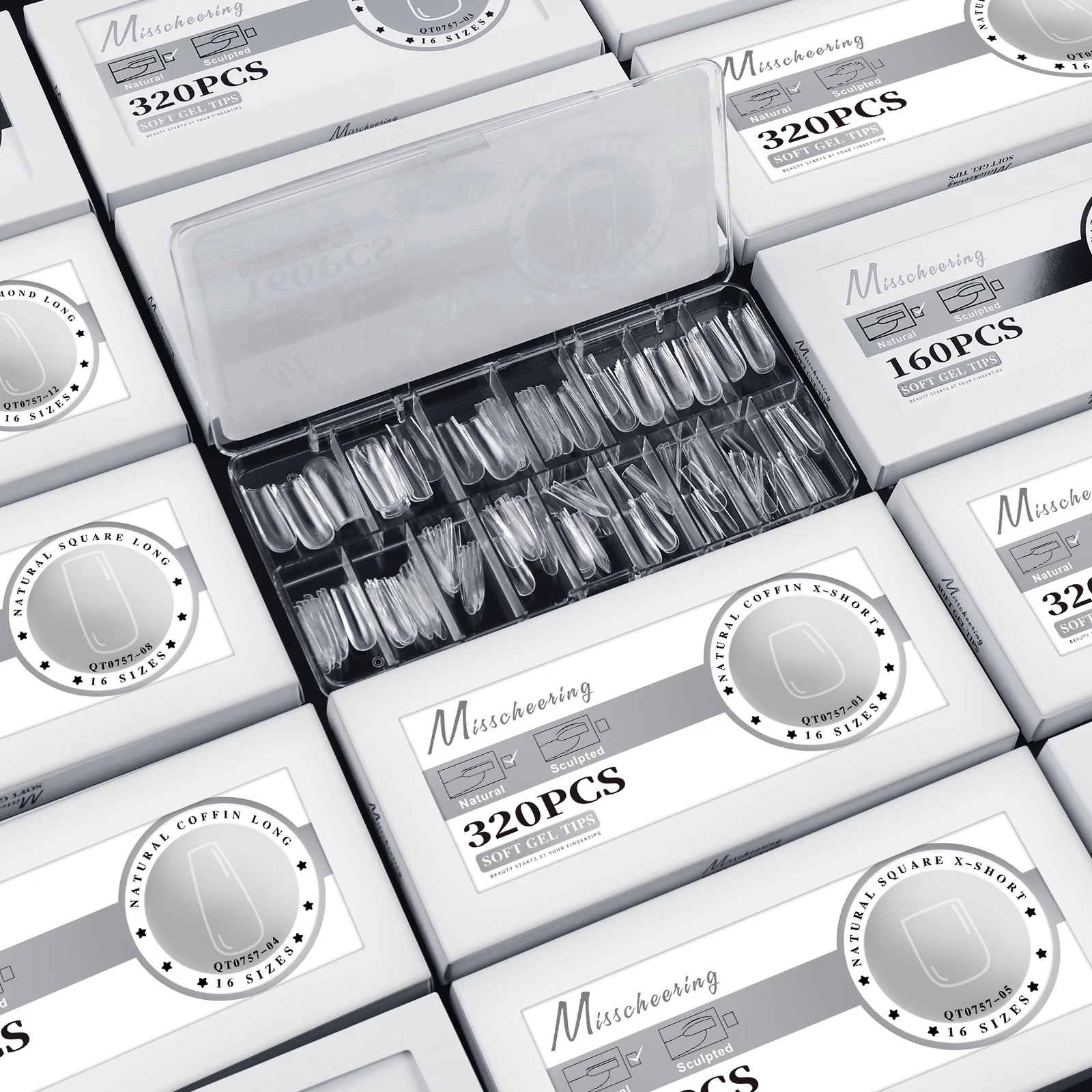 XS-L Nature Soft Gel False Nail Tips Full Cover Press on Almond Capsules Coffin Artificial Glossy Fake Nails Extension 16 Sizes