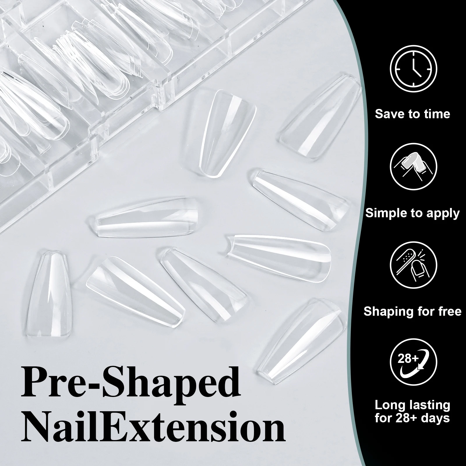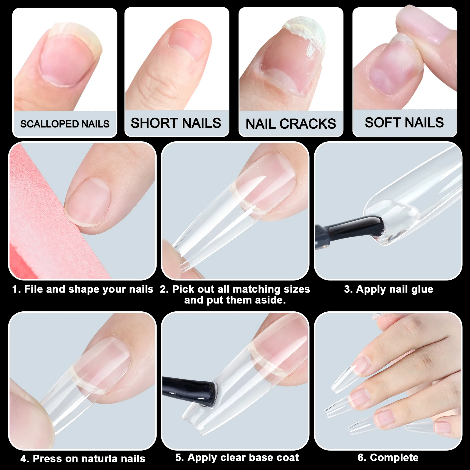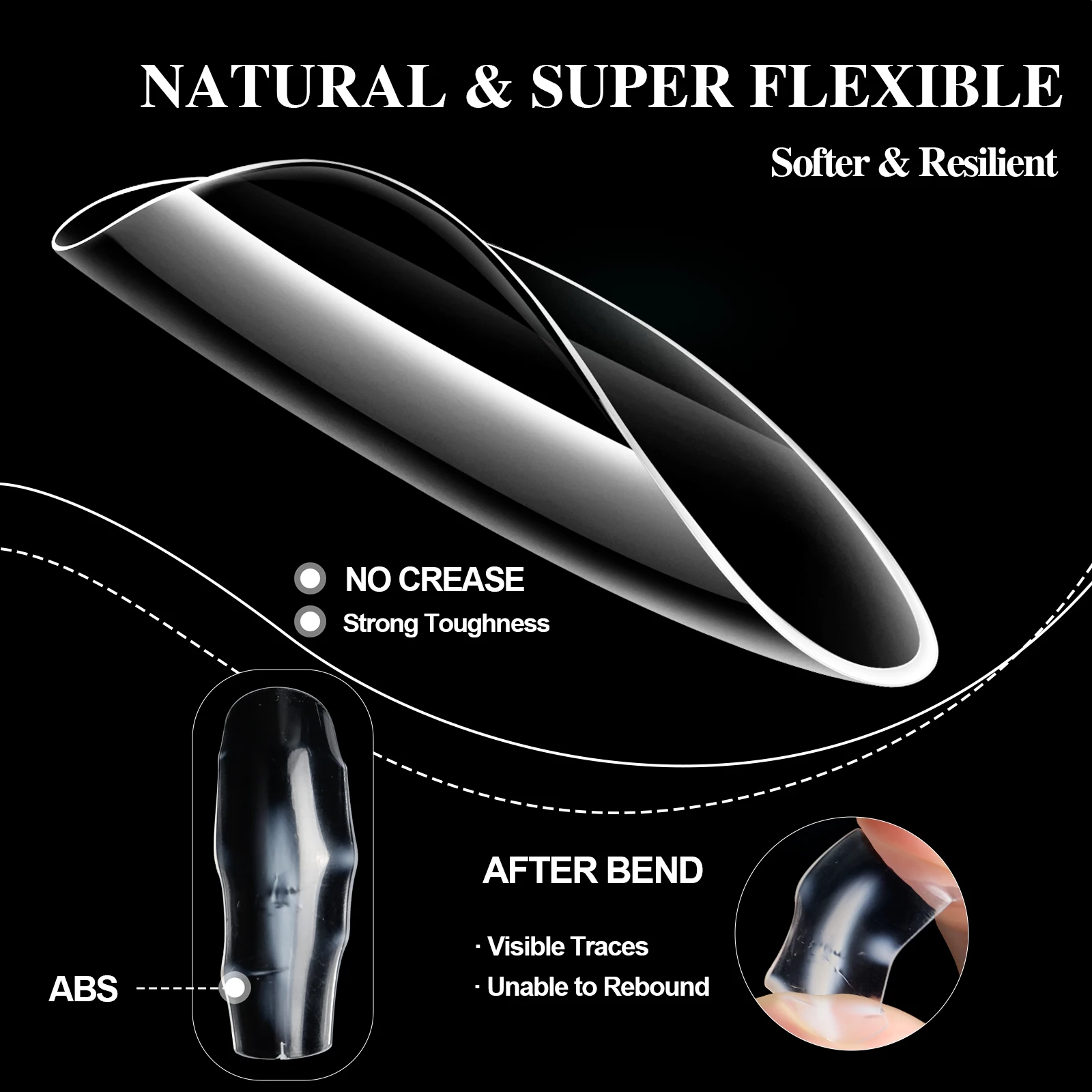 XS-L Nature Soft Gel False Nail Tips Full Cover Press on Almond Capsules Coffin Artificial Glossy Fake Nails Extension 16 Sizes
